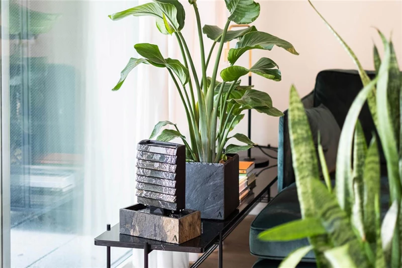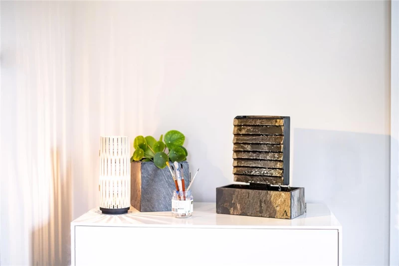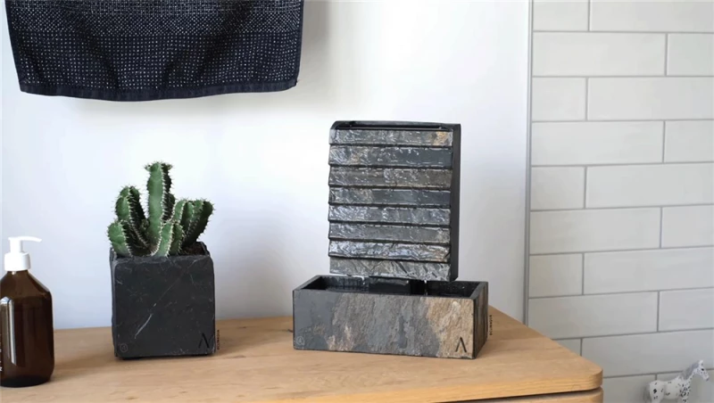 AVA S findet seinen Platz sowohl im Indoor- wie auch im Outdoor-Bereich. Die elegante Wasserwand aus Naturschiefer sorgt mit seinem feinen und angenehmen Wasserspiel für eine erfrischendes Ambiente und bringt dir die Natur nach Hause. Durch die Wasserverdunstung sorgt die Wasserwand im Innenbereich zudem für ein angenehmes Raumklima. Ein Wasseranschluss ist dank dem integrierten Wassertank nicht nötig und kann dadurch einfach und überall installiert werden. Der Tank muss regelmässig nachgefüllt werden, da das Wasser langsam verdunstet.