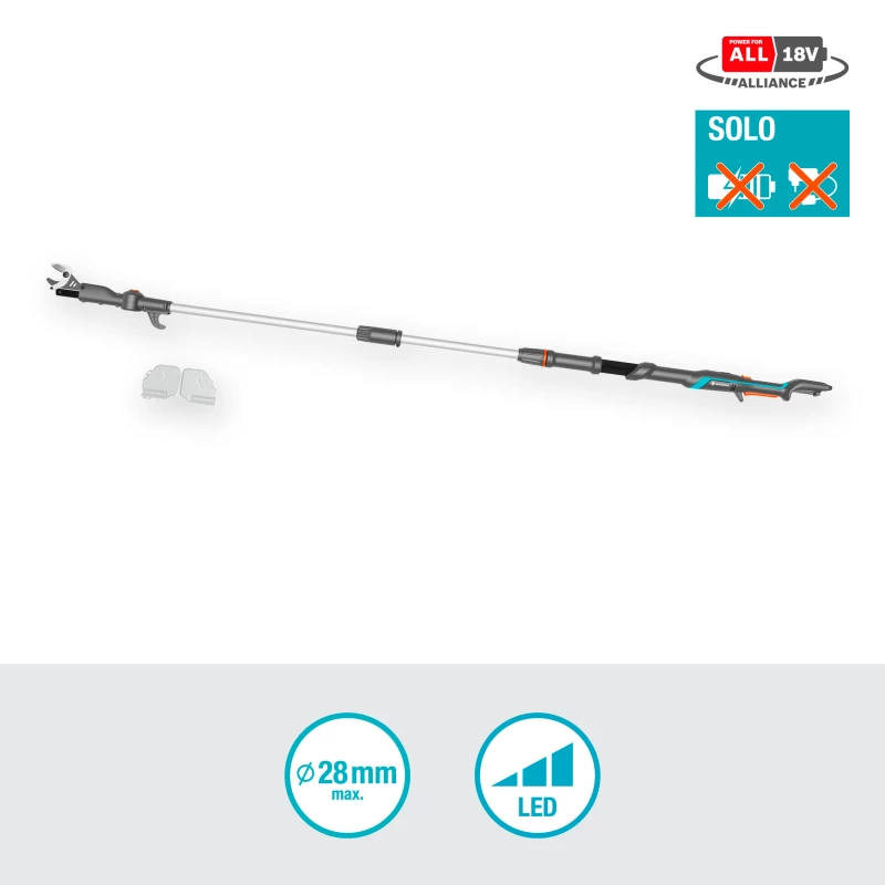 Die GARDENA Akku-Teleskop-Baumschere HighCut 250/18V P4A solo ermöglicht komfortables Baumschneiden vom Boden aus.