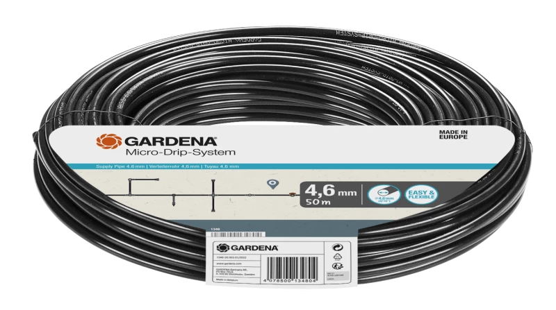Zuleitungsrohr fĂĽr SprĂĽhdĂĽsen und Tropfer, sowohl ober- als auch unterirdisch nutzbar.Â