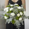 - Chrysanthemen-Santini, Eukalyptus, Mini-Gerbera, Nelke, Wax-Flower