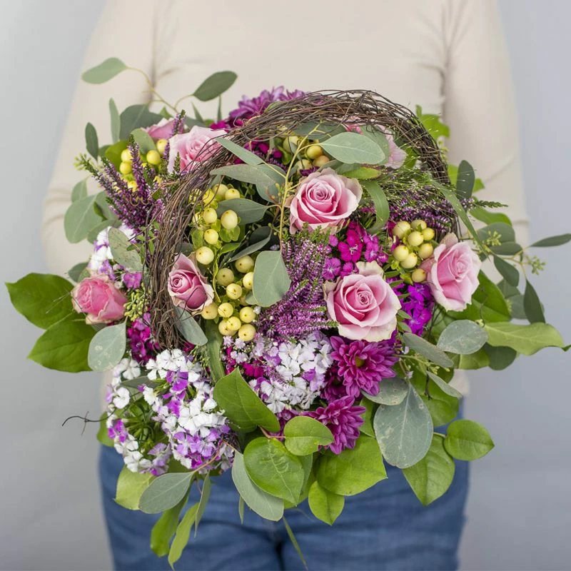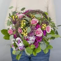 Der Strauß „Herbstleuchten“ überzeugt durch rosafarbene Premium-Rosen und Bartnelken sowie Eukalyptus und Reisig. Ergänzt wird dieser Herbststrauß durch passendes Beiwerk der Saison. Natürlich wird der Strauß erst auf Bestellung frisch handgebunden und sicher verpackt.