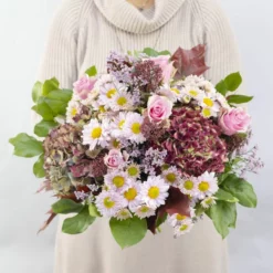 Der Herbststrauß „Maylin“ überzeugt mit Hortensien in herstblichen Farben, rosafarbenen Premium-Rosen und Freiland-Chrysanthemen sowie passendem Beiwerk der Saison. Natürlich wird der Strauß frisch auf Bestellung handgebunden und sicher verpackt.