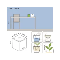 Über das Wasserreservoir werden die Pflanzen zuverlässig und individuell mit Feuchtigkeit versorgt. Ob mit 14 oder mit 17 Zentimetern Kantenlänge – in den Farbtönen weiß, schiefergrau und limettengrün lässt sich mit dem CUBE Color jede Fensterbank in einen kleinen Kräutergarten verwandeln. Der CUBE Color 14 ist ideal für alle Standard-Kräutertöpfe (10-12 cm Durchmesser).