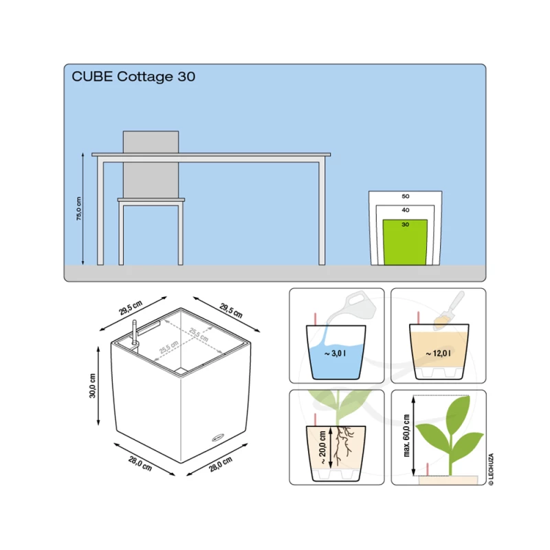 Der CUBE Cottage mit der beliebten Flechtstruktur präsentiert sich als echter Würfel mit gleich langen Seiten. CUBE Cottage eignet sich besonders für Pflanzen mit großem Wurzelvolumen. Mit drei verschiedenen Größen inszenieren Sie schöne Arrangements.