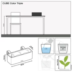 Noch nie war Balkonbegrünung einfacher. CUBE Color Triple bietet Platz für drei Kulturtöpfe. Diese können einfach und ohne Umtopfen eingesetzt werden. Damit sind dekorative Blühpflanzen oder praktische Kräuter schnell eingesetzt. Und dank des bewährten LECHUZA Stick-Prinzips sind sie lange und optimal mit Wasser versorgt.