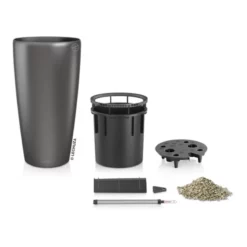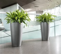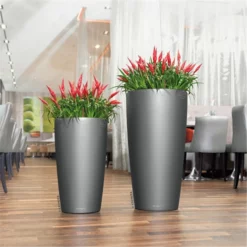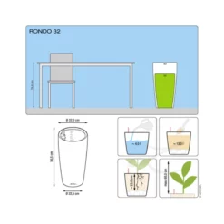 Die klassische Form des grazilen Pflanzgefäßes RONDO bringt Pflanzen optimal zur Geltung und rückt sie ins beste Licht. Skulpturenartig inszeniert verschönern sie Wohn- und Geschäftsräume in RONDO wie grüne Kunstwerke. Der Pflanzeinsatz mit pantentiertem Griffrahmen in Gefäßfarbe erleichtert den Austausch und die Pflege der Pflanzen in der gewohnten LECHUZA Qualität.