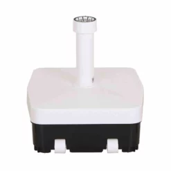 <UL><LI>mit Sand befüllbar <LI>für Schirmstöcke Ø 21 – 54 mm <LI>Kunststoffrohr mit Zentriereinsatz <LI>NEU: mit Supergrip-Mutter: 400% mehr Grip und schirmstockschonend<LI> mobil mit Rolle und Griff<LI>Unterseite aus Kunststoff zum Schutz des Bodens<LI> Leergewicht 2,5 kg</LI>